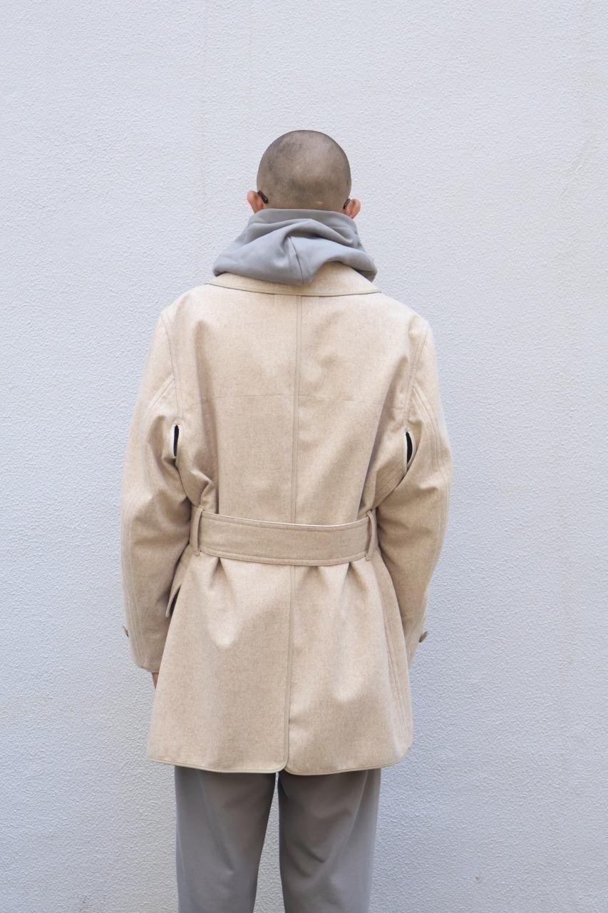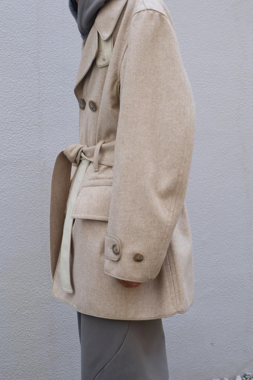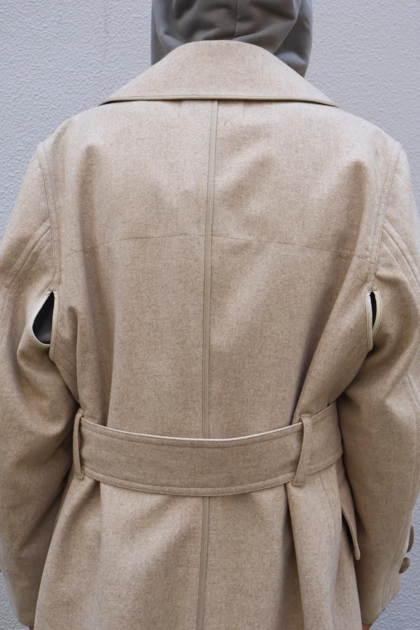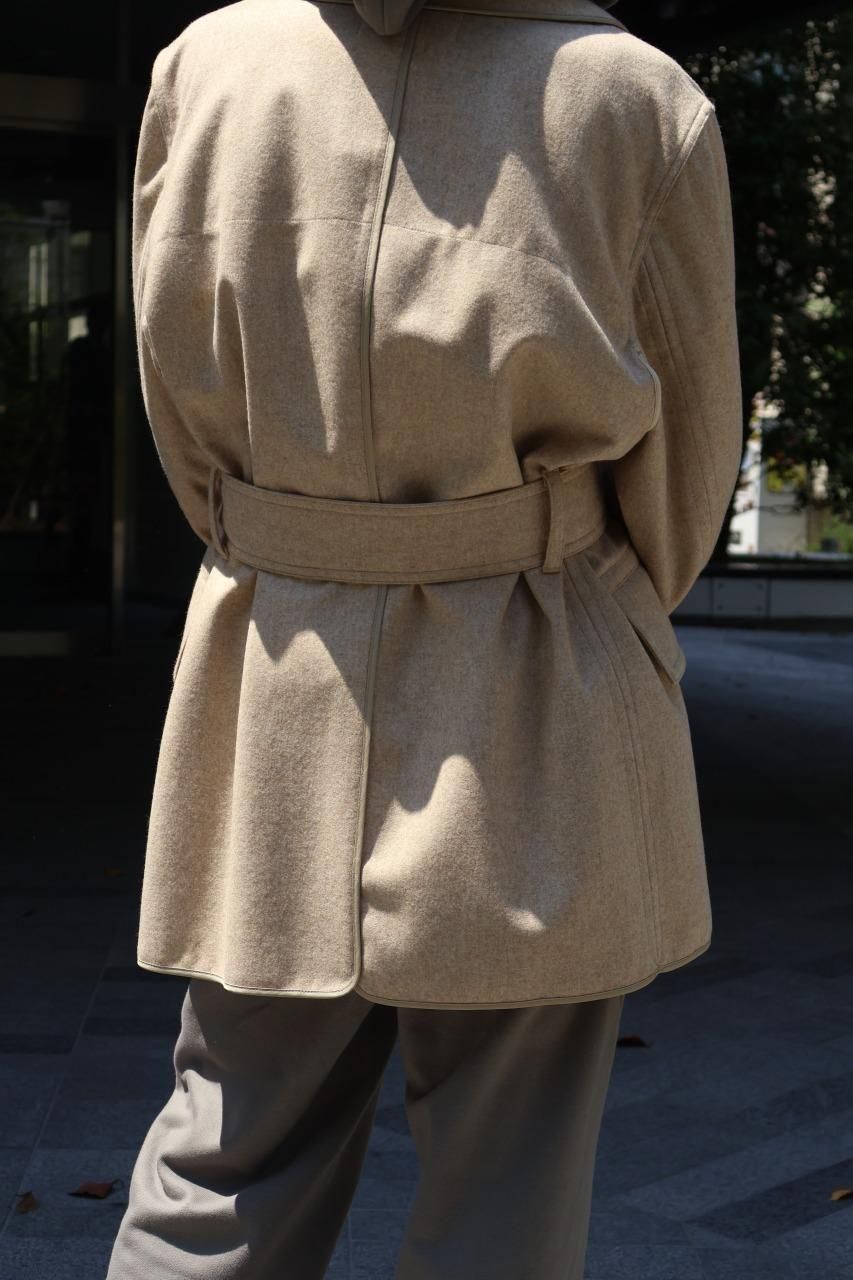 表情豊かで深みのあるメランジカラー、上品な光沢が特徴のウール / ライトメルトン素材に、光沢ある裏地での異素材パイピングデザインを組み合わせました。