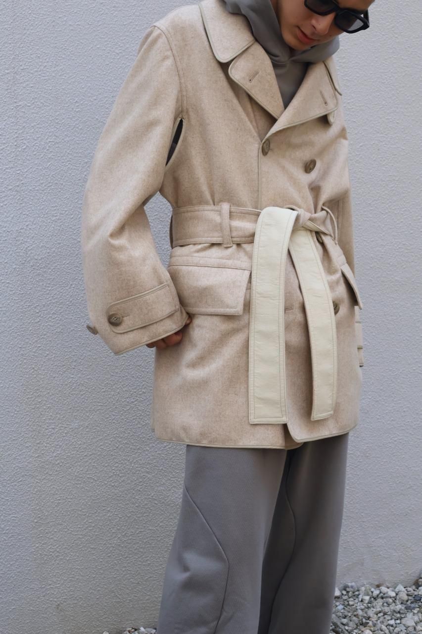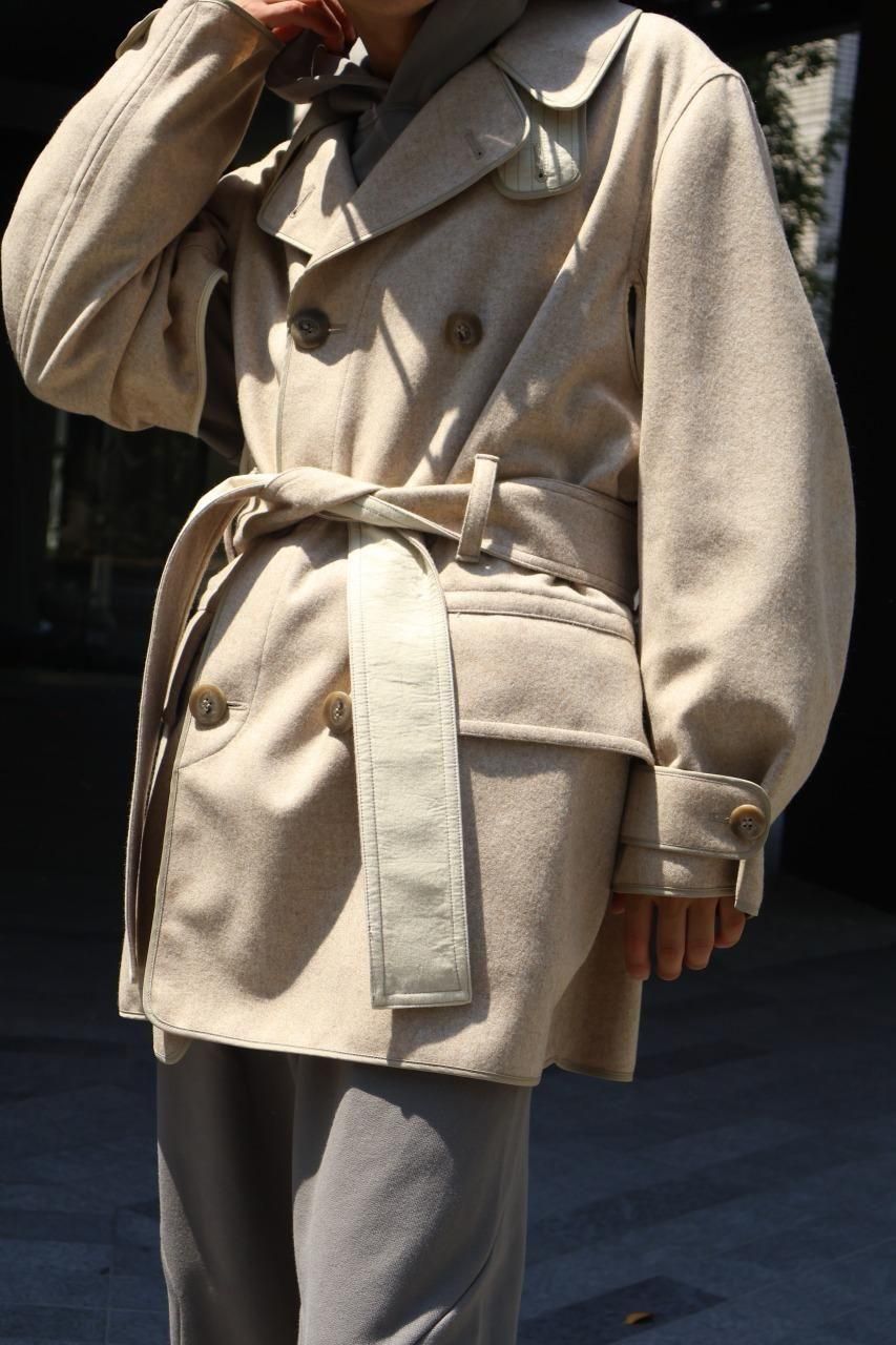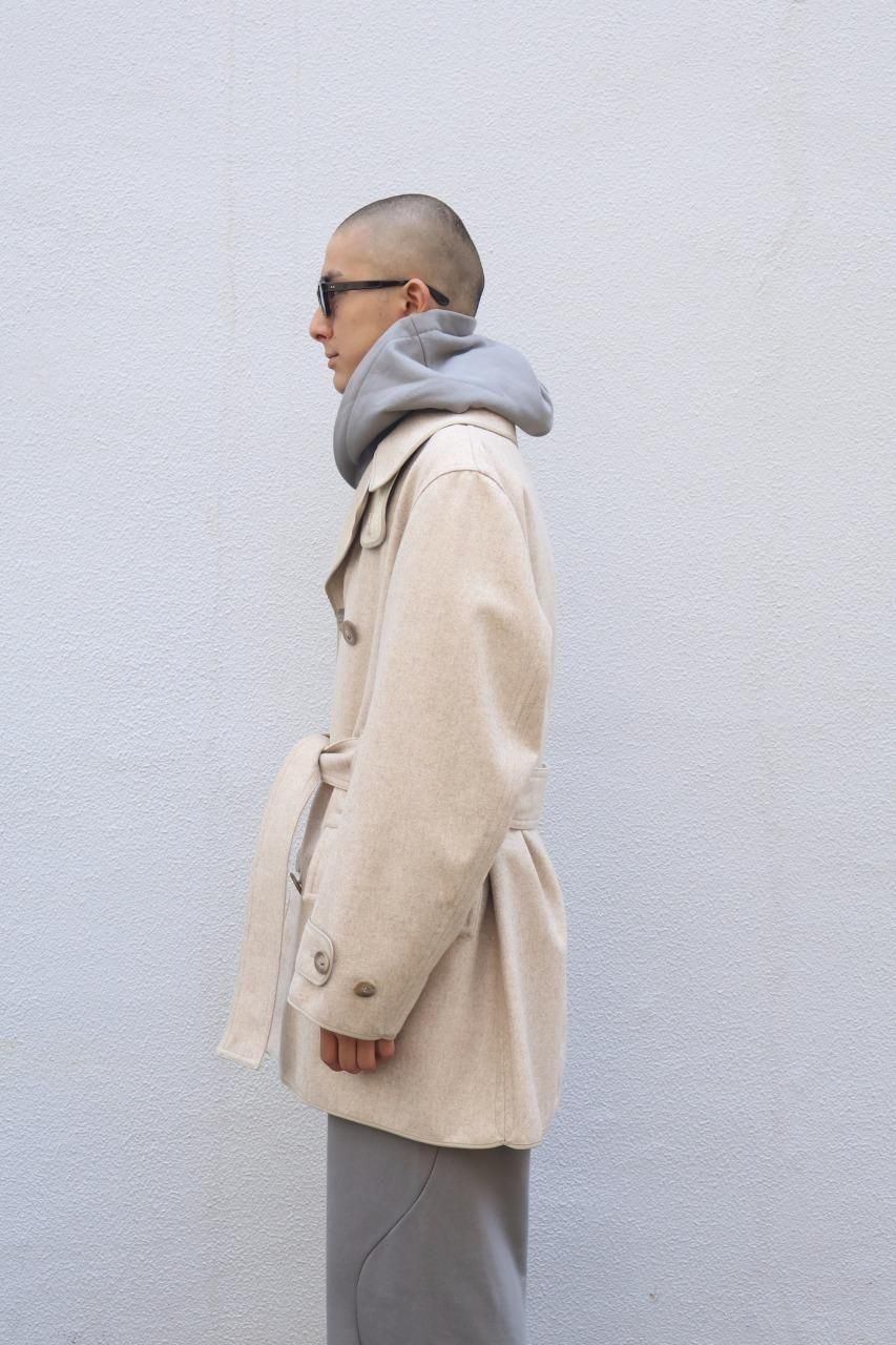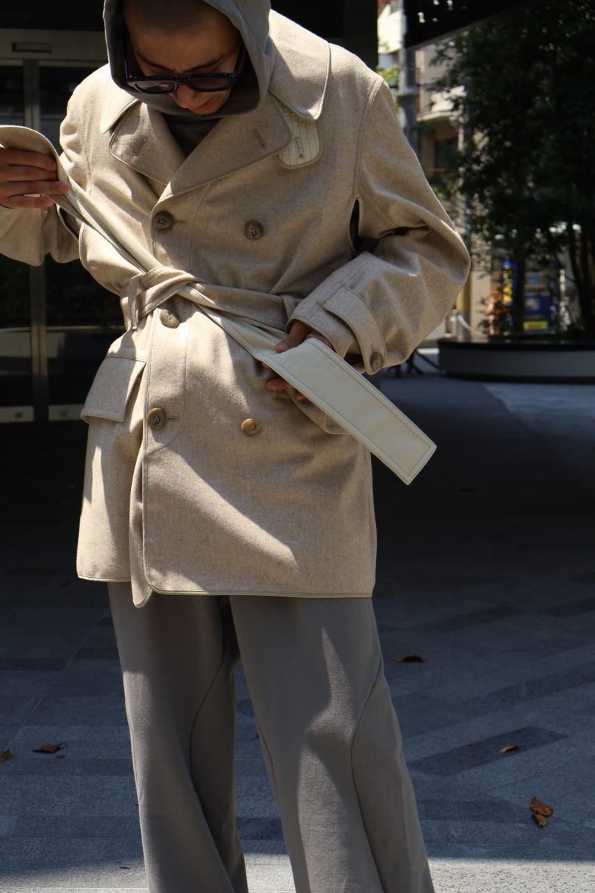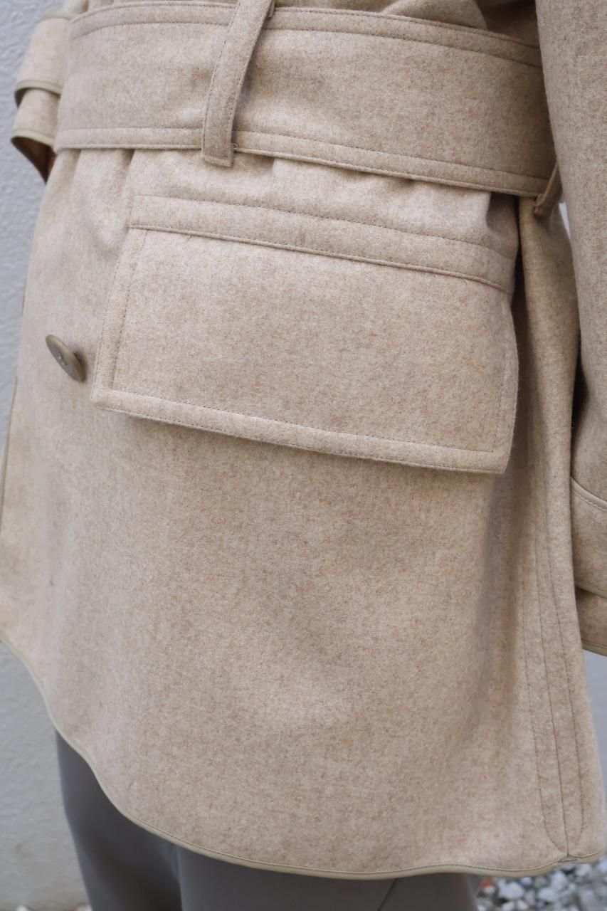 表情豊かで深みのあるメランジカラー、上品な光沢が特徴のウール / ライトメルトン素材に、光沢ある裏地での異素材パイピングデザインを組み合わせました。