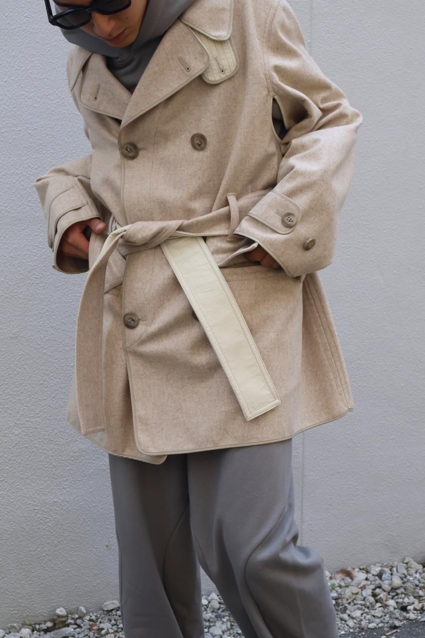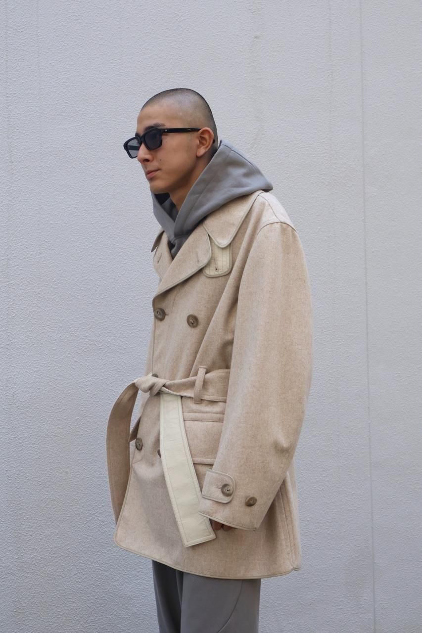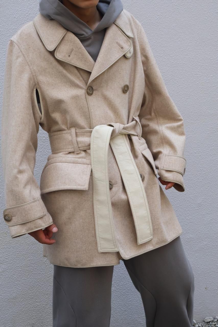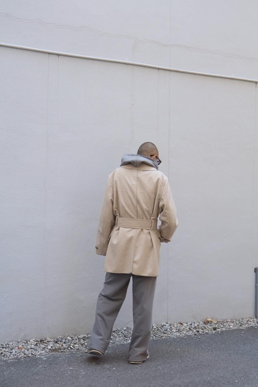表情豊かで深みのあるメランジカラー、上品な光沢が特徴のウール / ライトメルトン素材に、光沢ある裏地での異素材パイピングデザインを組み合わせました。