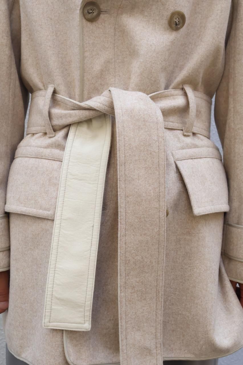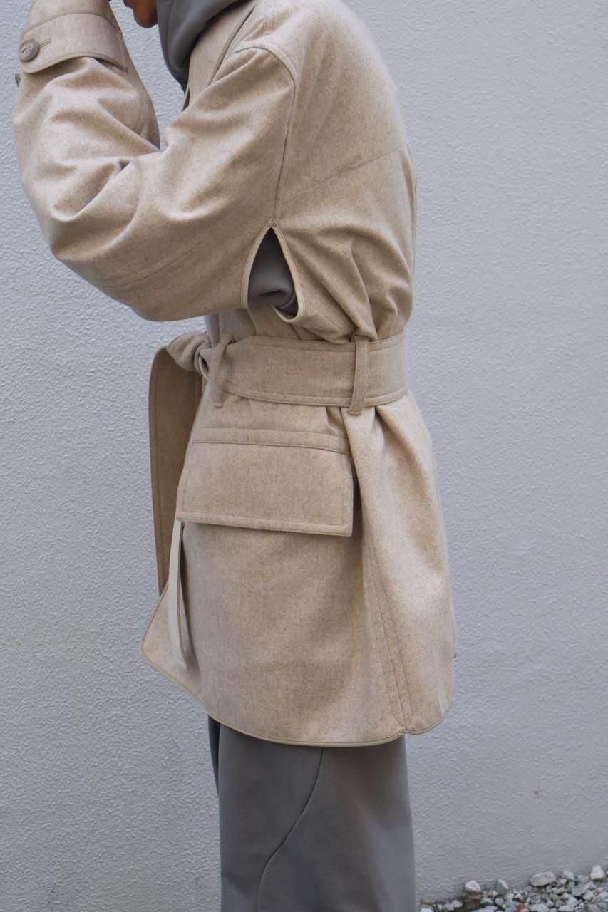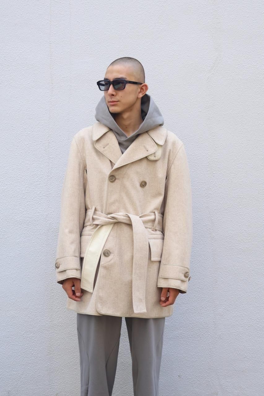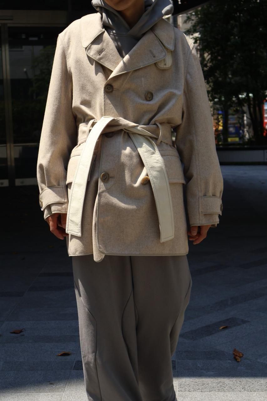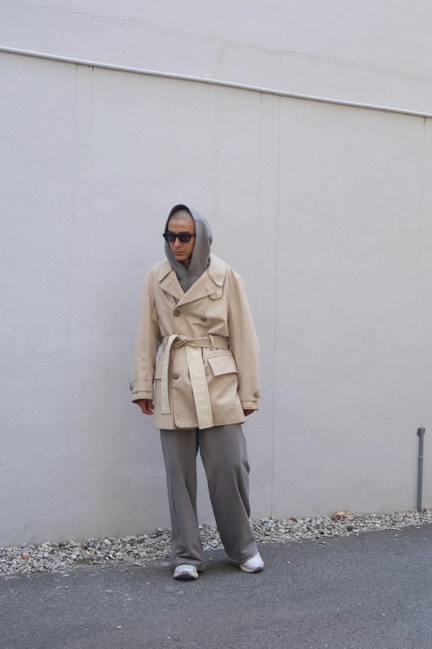 表情豊かで深みのあるメランジカラー、上品な光沢が特徴のウール / ライトメルトン素材に、光沢ある裏地での異素材パイピングデザインを組み合わせました。