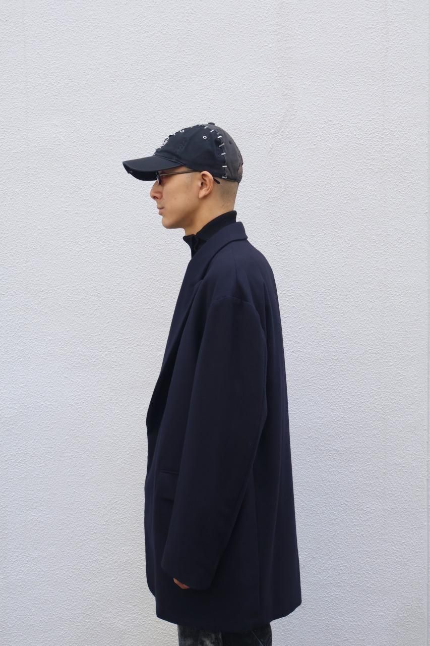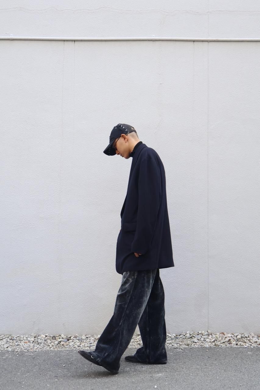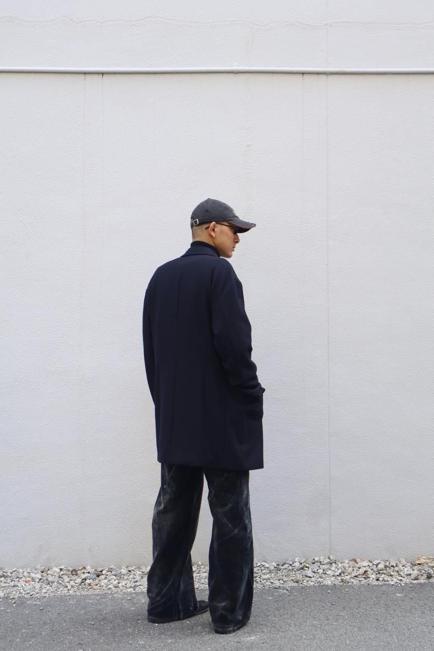 クローゼットに眠る、父や祖父のジャケットが着想源のジャケットはオーバサイズのシルエットをベースに比翼仕様などコートのディテールを踏襲しながら、肩や袖、シェイプなど再構築し、ソフトに仕上げたジェケットです。