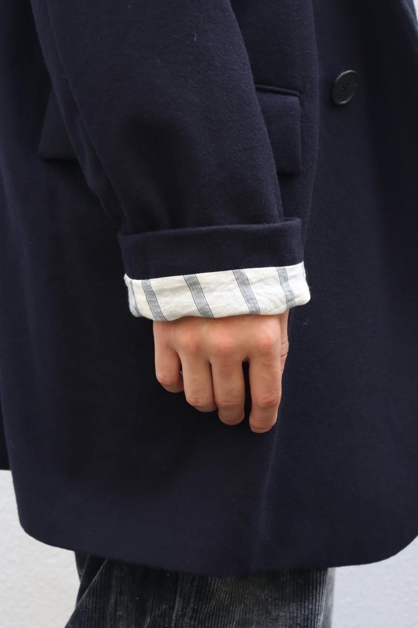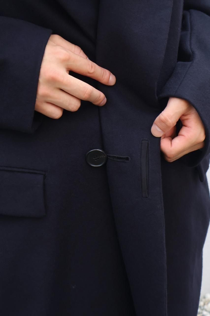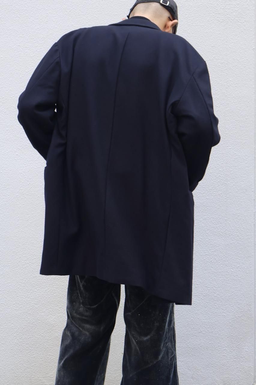 クローゼットに眠る、父や祖父のジャケットが着想源のジャケットはオーバサイズのシルエットをベースに比翼仕様などコートのディテールを踏襲しながら、肩や袖、シェイプなど再構築し、ソフトに仕上げたジェケットです。