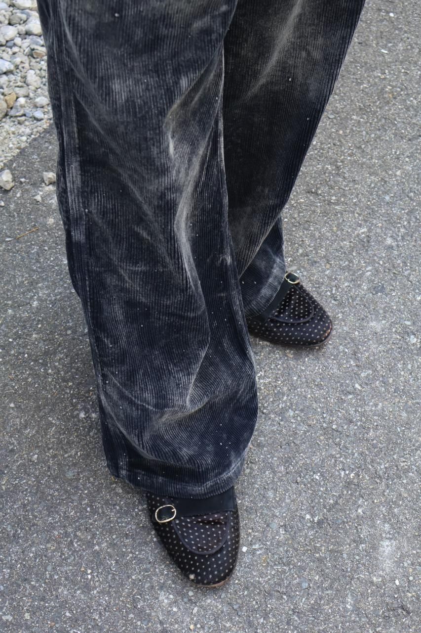 オーガニックコットンの通常よりも柔らかい風合いのコーデュロイを使用したペインターパンツ。