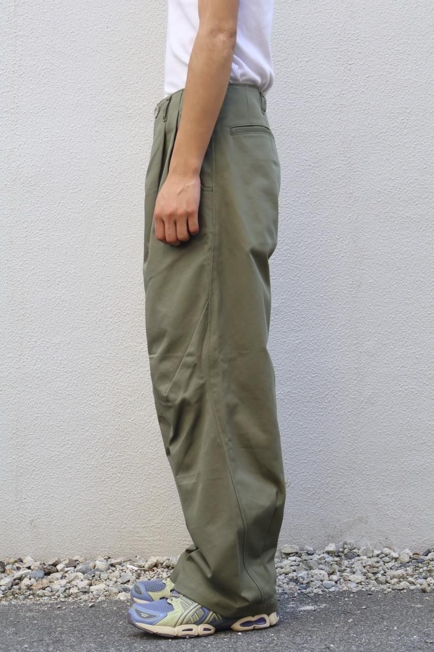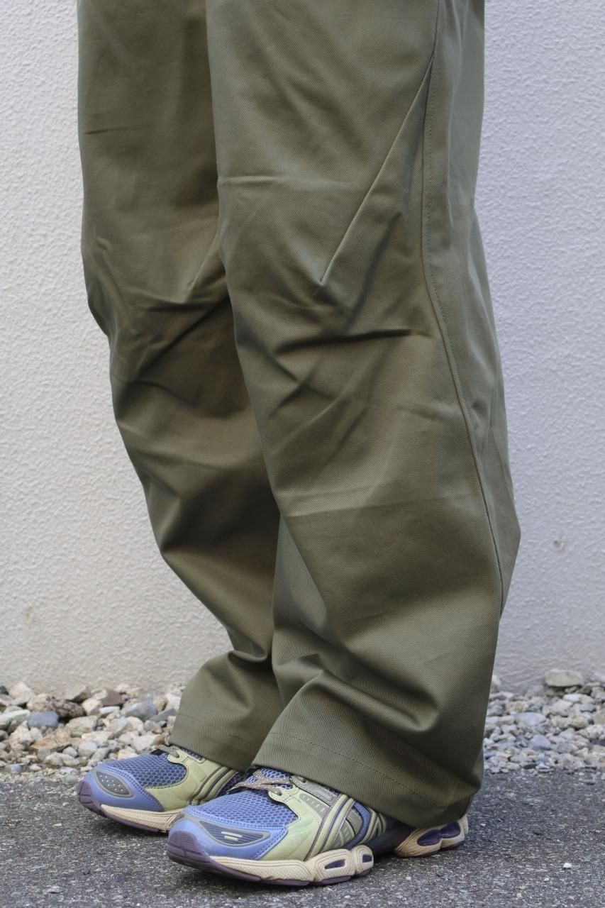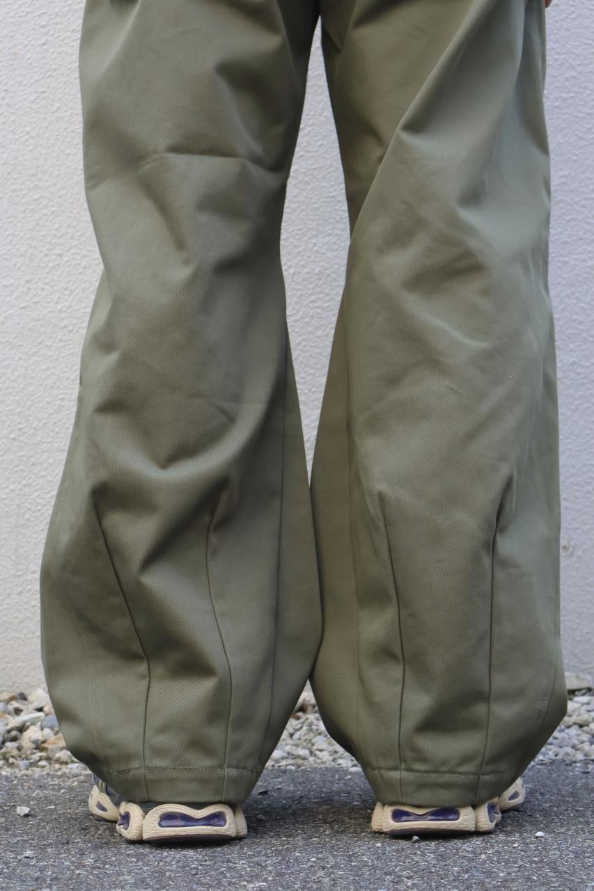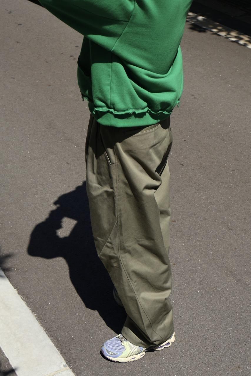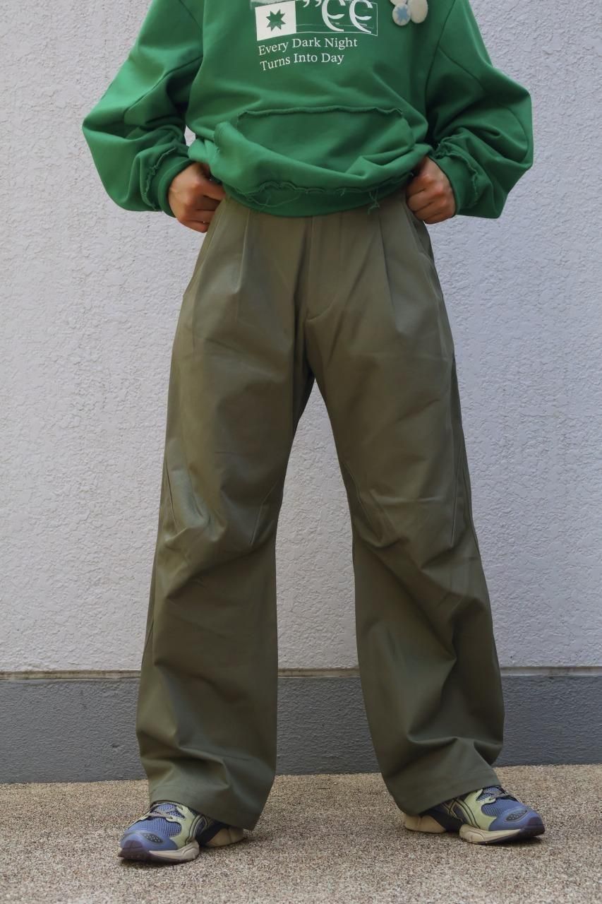 25SSシーズンのアイテムである、Tapered Pantsをより無骨に、よりワイドに仕上げたパンツ。