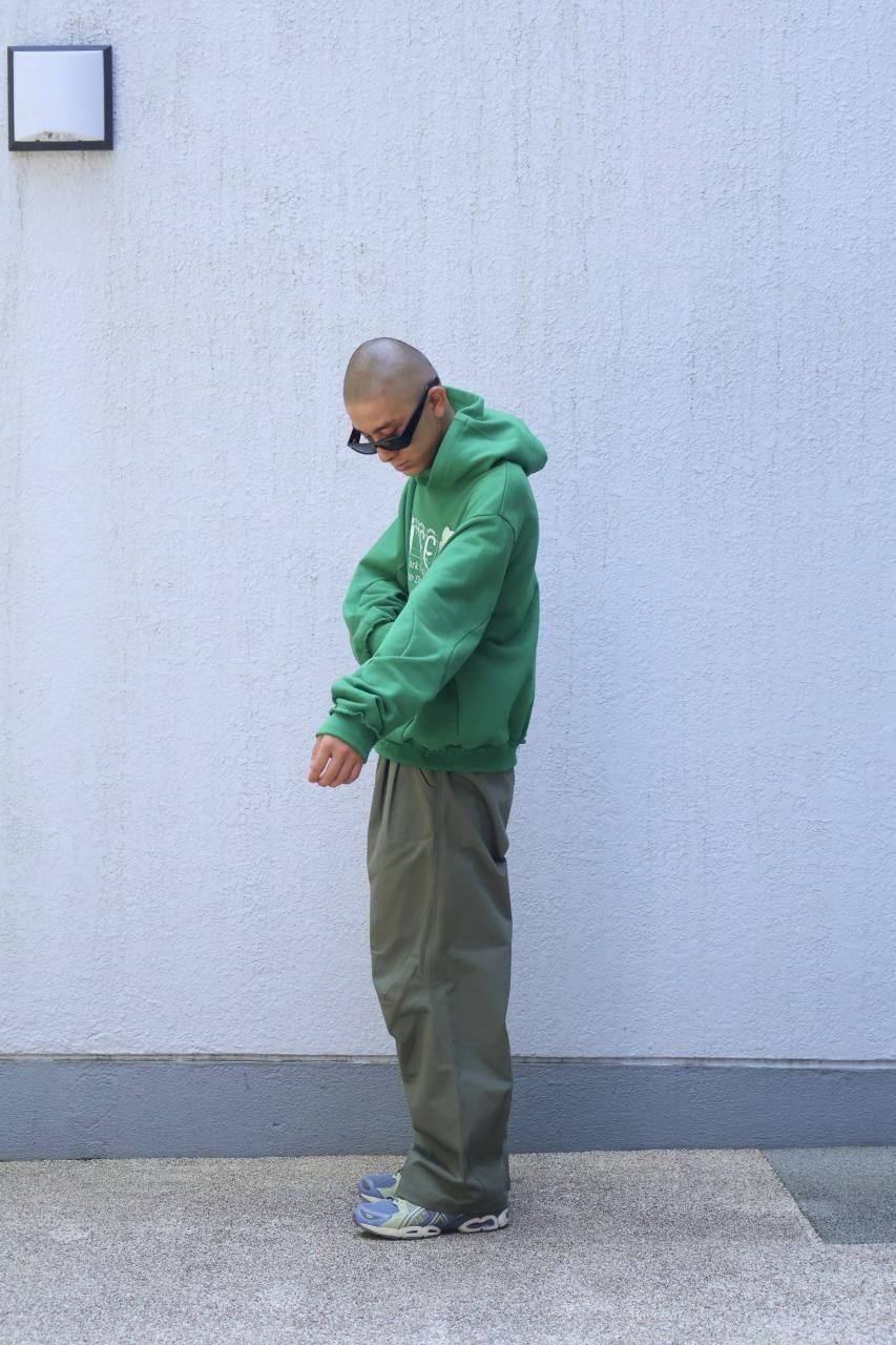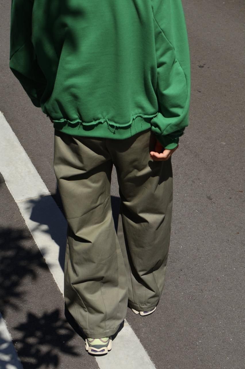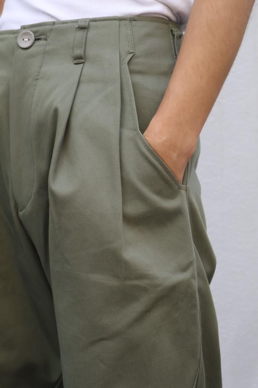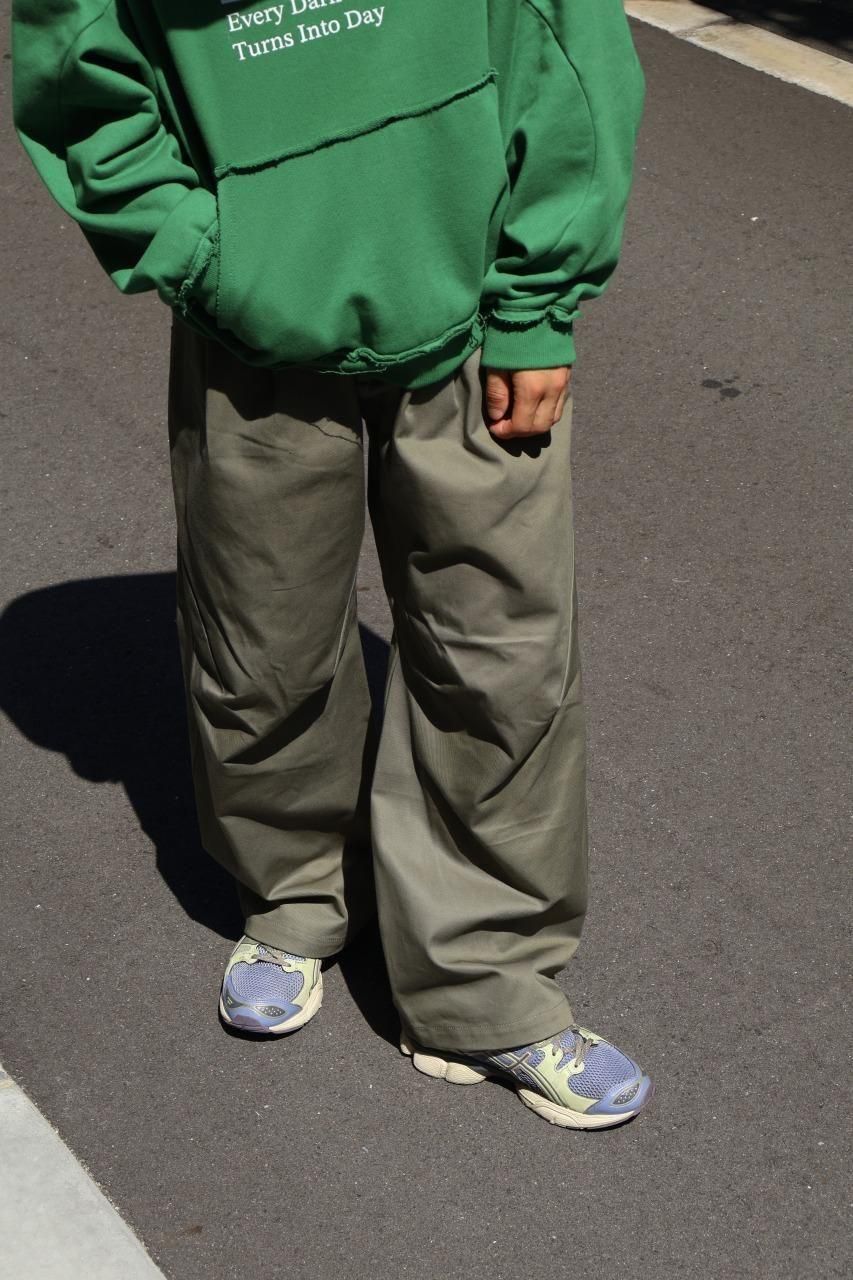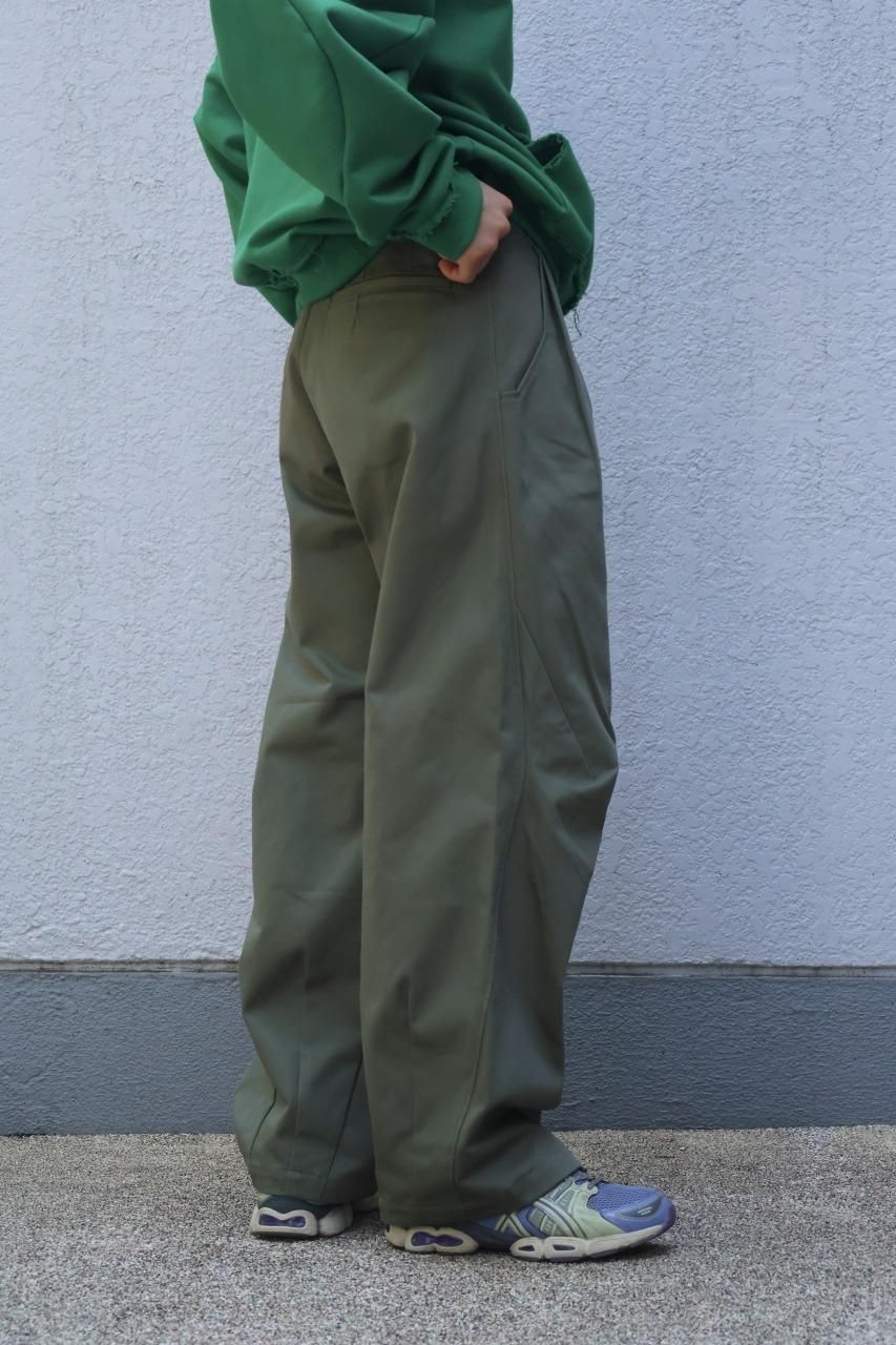 25SSシーズンのアイテムである、Tapered Pantsをより無骨に、よりワイドに仕上げたパンツ。