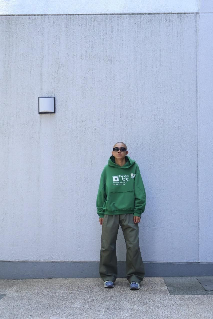 映画の空気感やデザイナー自身が日常で感じたものをファッションの現実世界に介入する役割を借りることでファッションデザインに昇華させデザイナー自身のルーツにあるミリタリー要素と感情が揺さぶられた時に生じる非日常な身体感覚を反映した歪みのある変則的なパターン、テキスタイルが特徴のブランド。