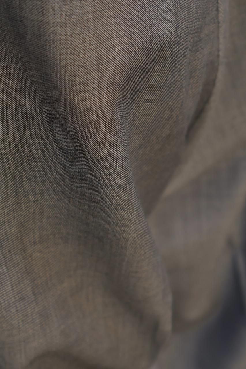 スーツにも用いられる高級素材ならではの上品な光沢とオーセンティックな雰囲気を持ちながら、生地自体は薄手。