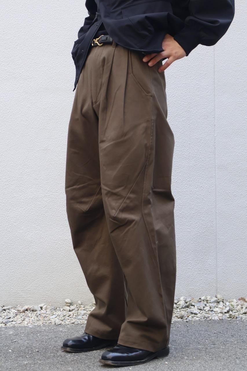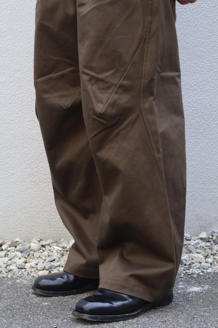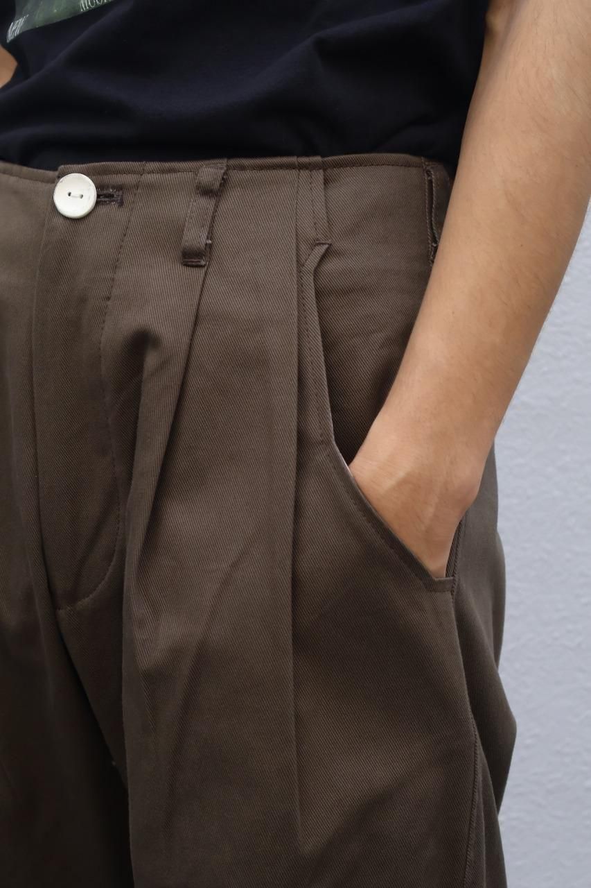 25SSシーズンのアイテムである、Tapered Pantsをより無骨に、よりワイドに仕上げたパンツ。