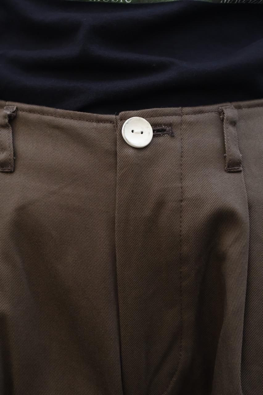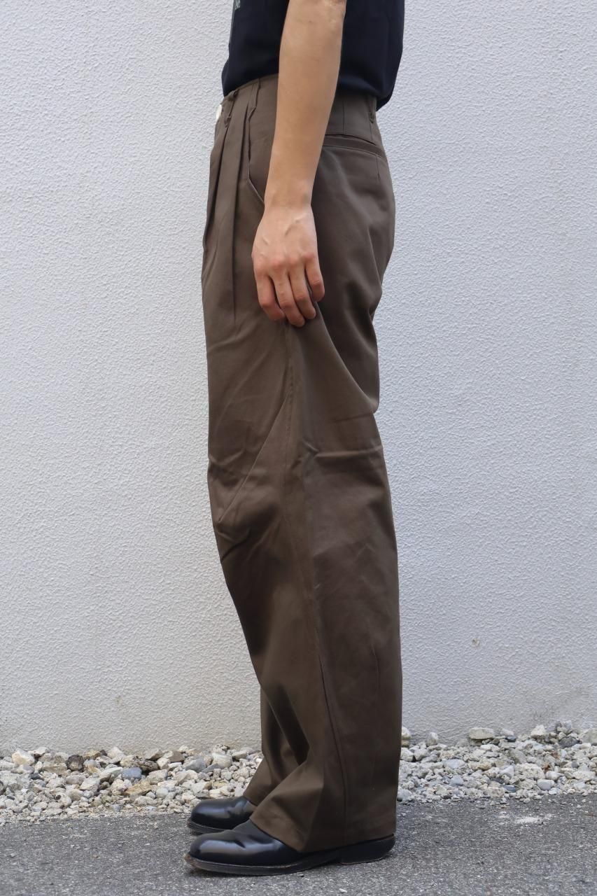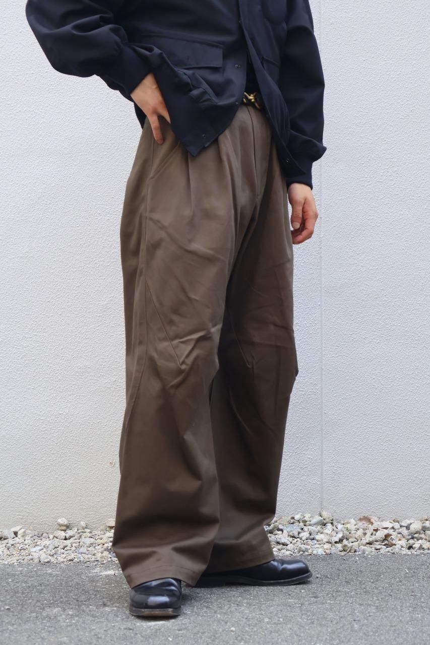 25SSシーズンのアイテムである、Tapered Pantsをより無骨に、よりワイドに仕上げたパンツ。