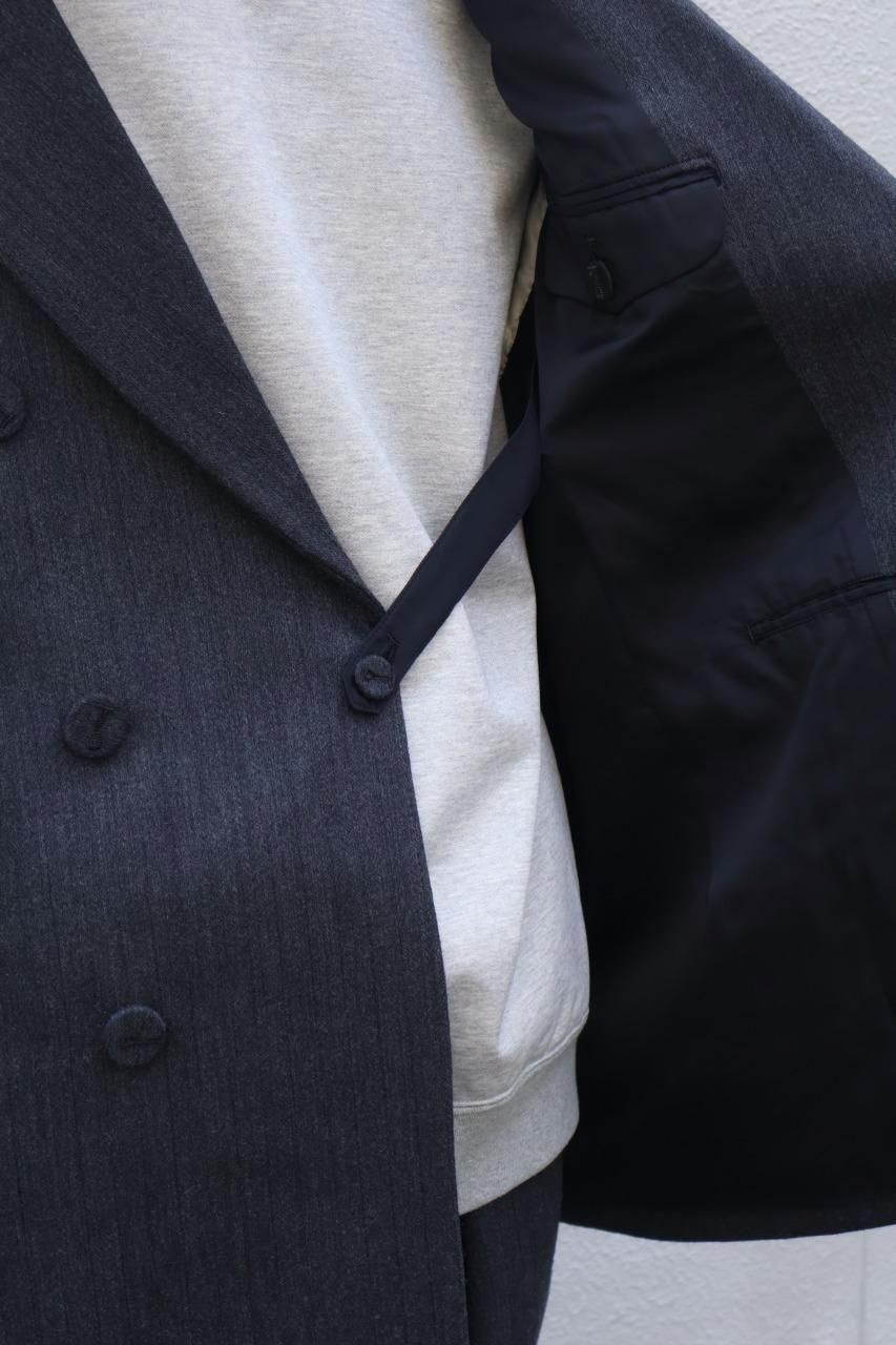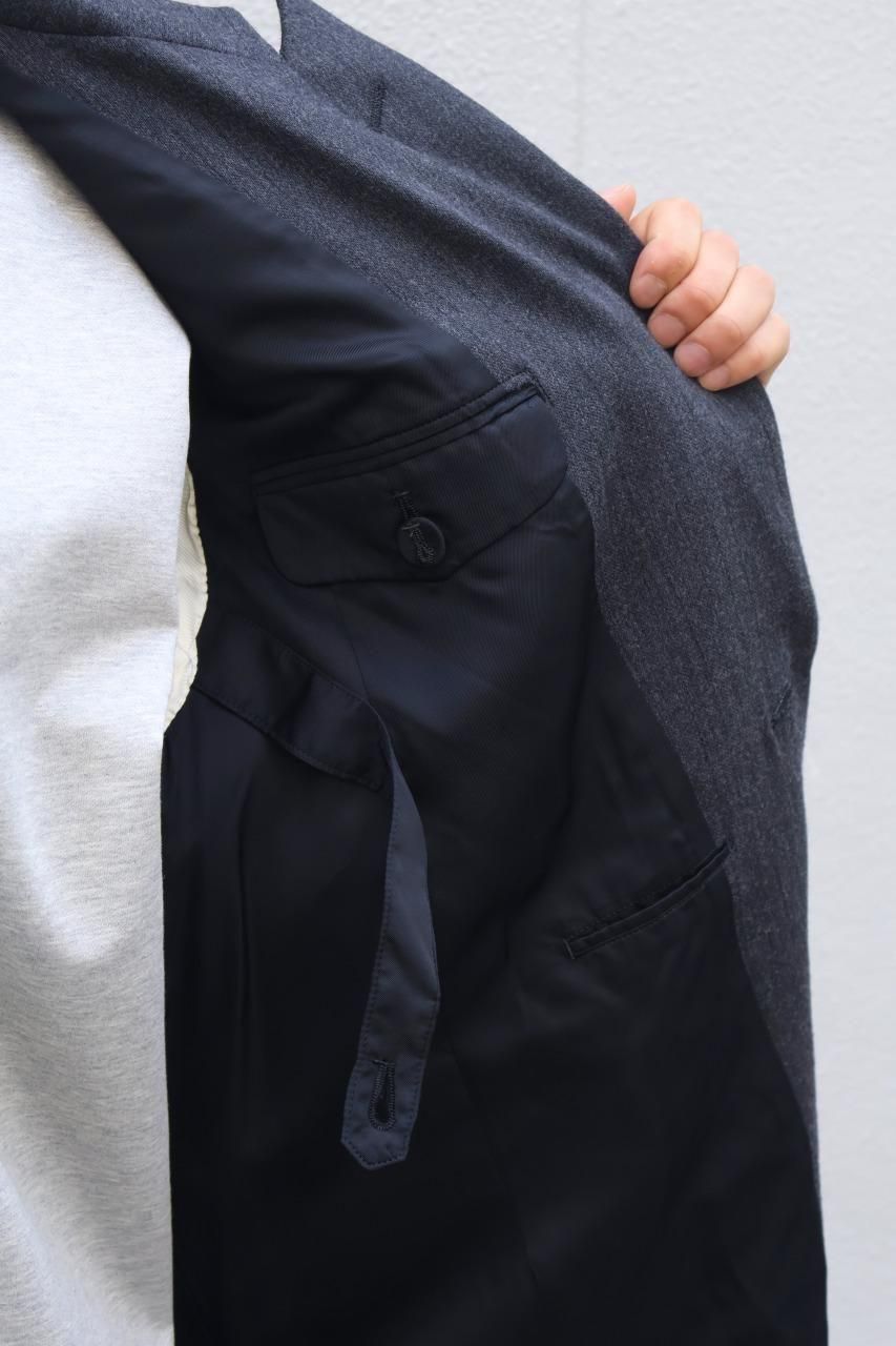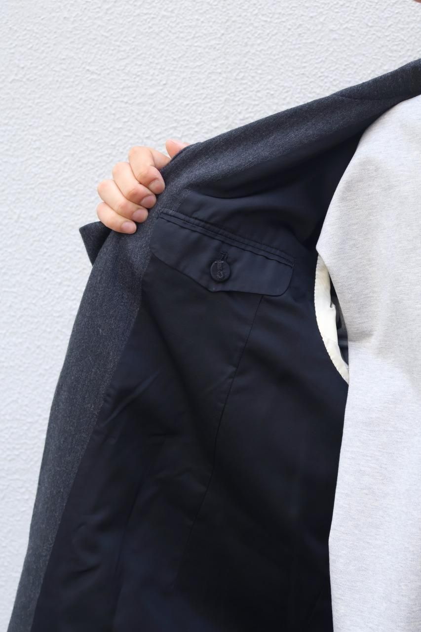 襟の形状、ポケット、内側の仕様、ステッチに至る細部まで、忠実にディティールをサンプリングしながら、現在地点での可能な限りの技術を駆使することで、現代に復刻した、ブランド独自のテーラリングアイテムです。