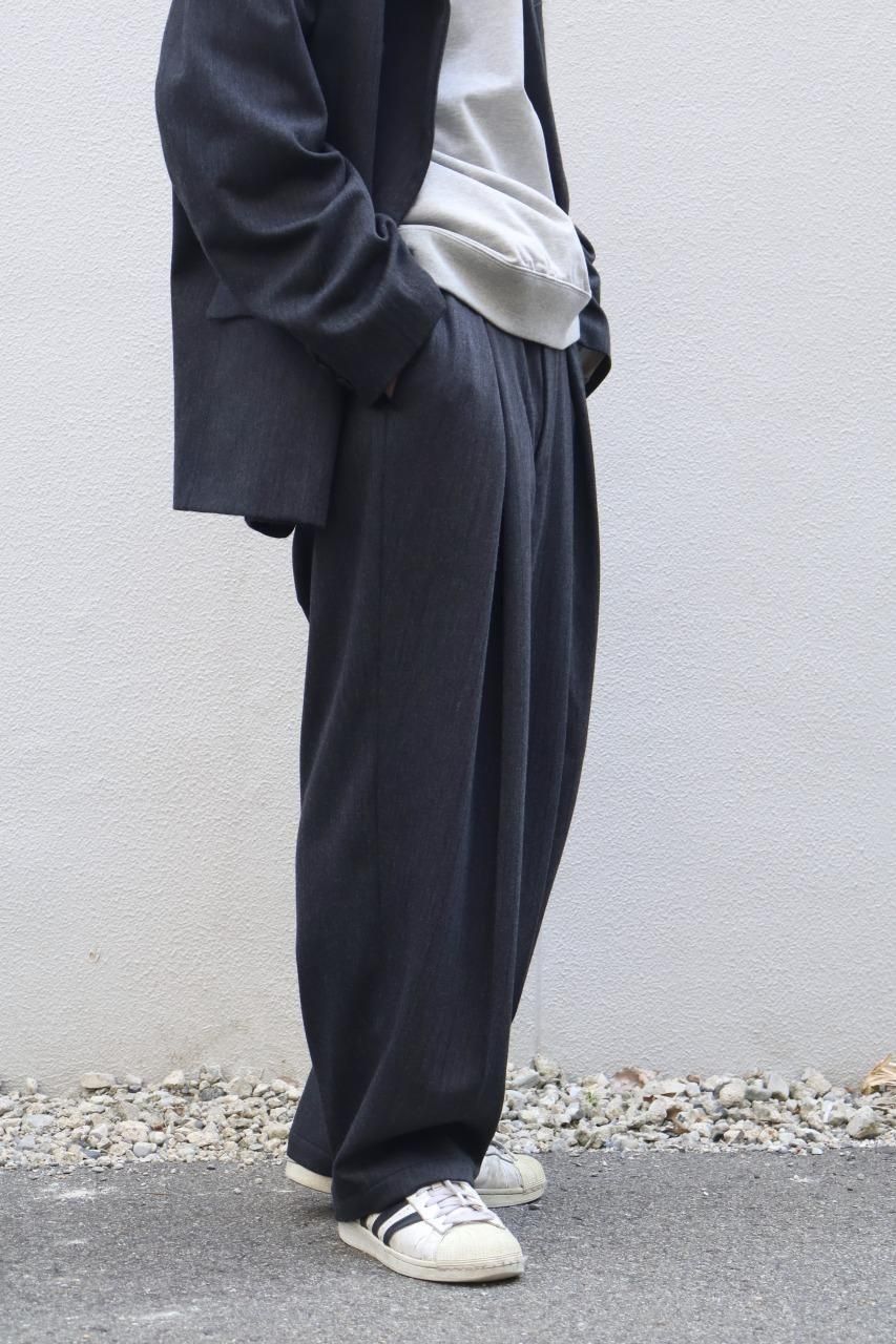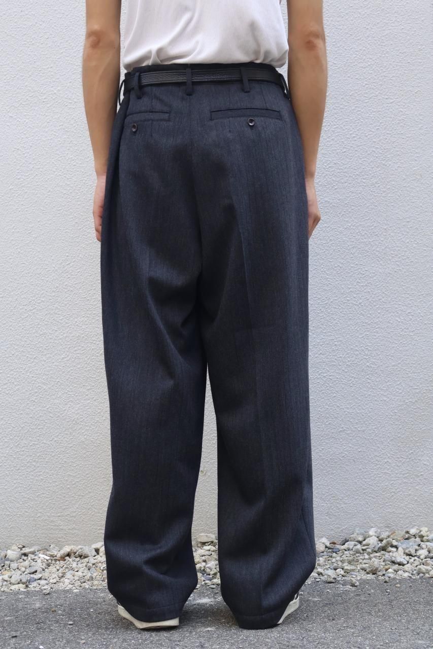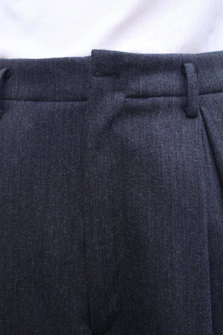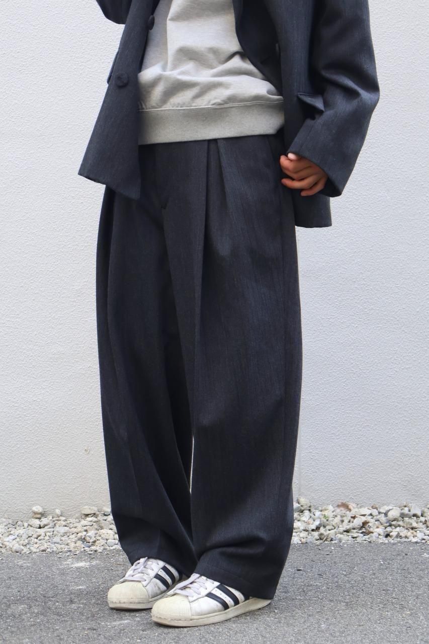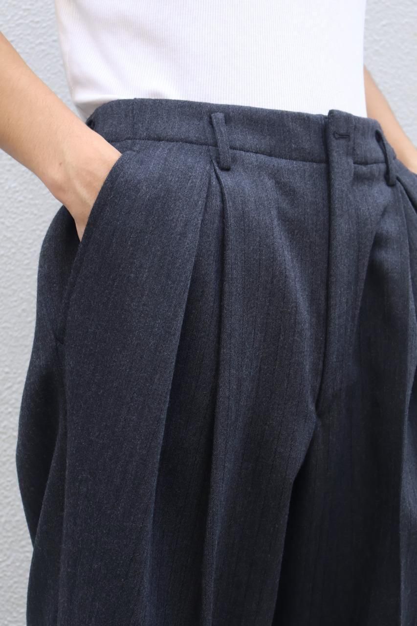 大きな分量を取った、インパーテッドボックスプリーツを1つのタックとして組み込み、ブランド独自のテーパードシルエットを作成。