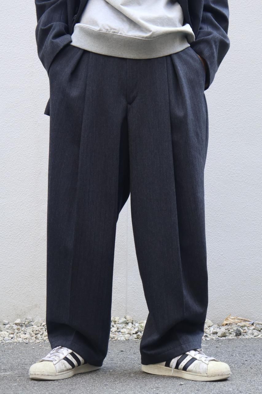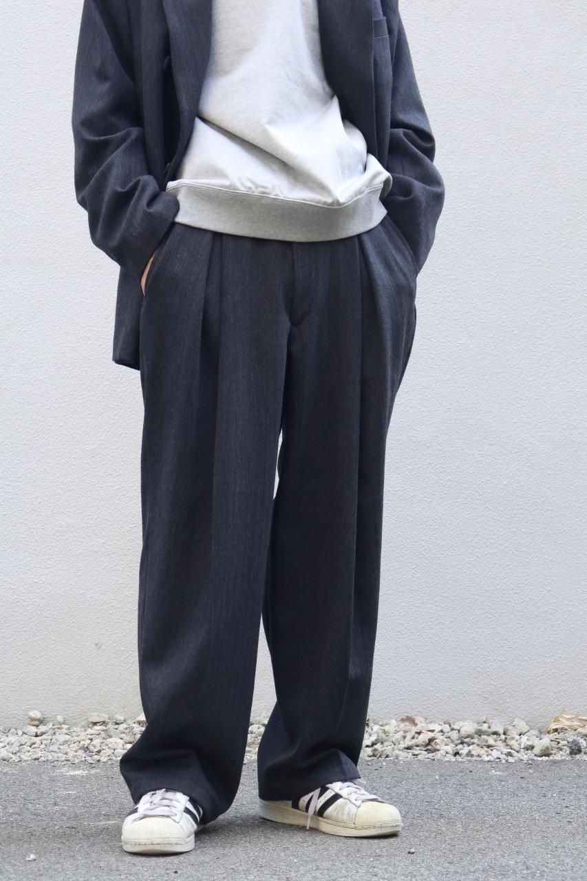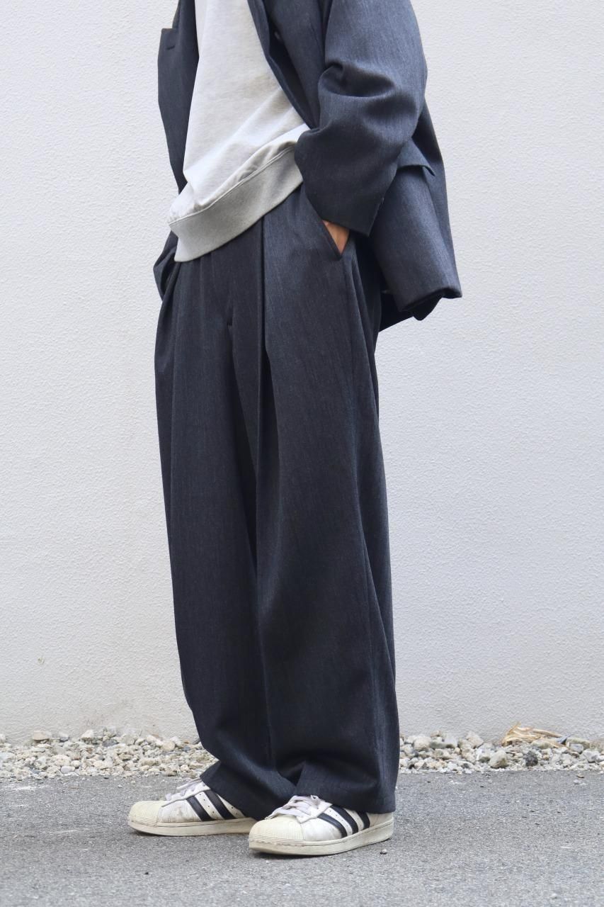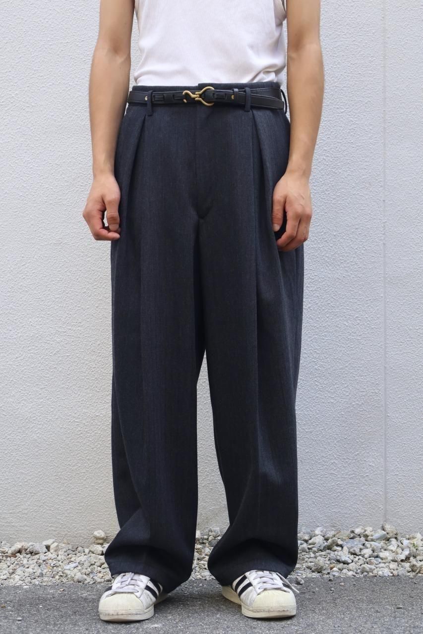 大きな分量を取った、インパーテッドボックスプリーツを1つのタックとして組み込み、ブランド独自のテーパードシルエットを作成。