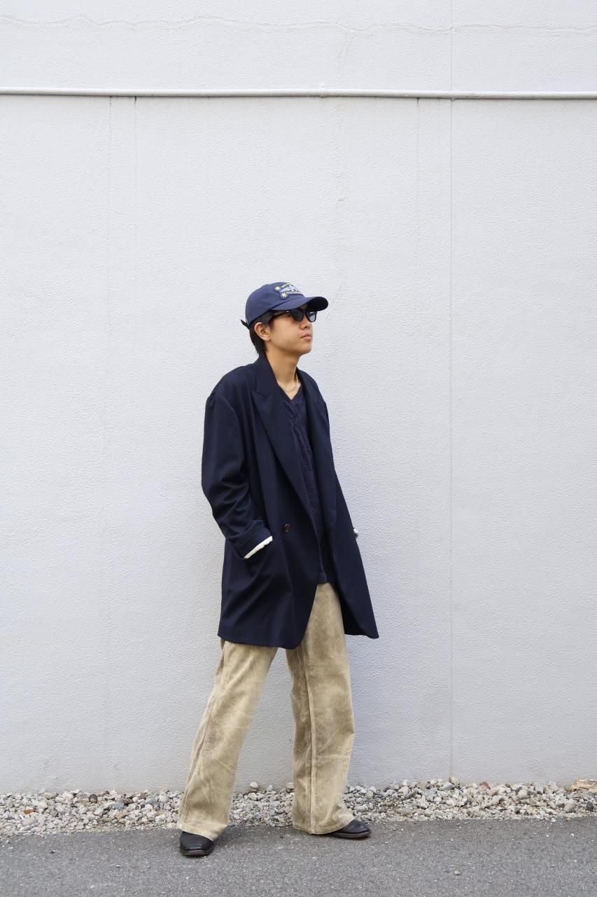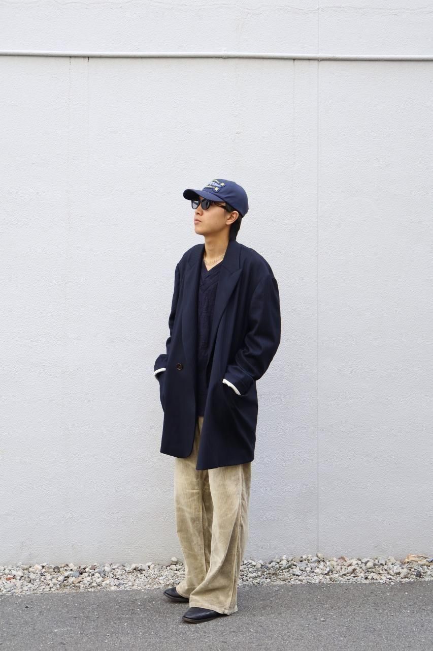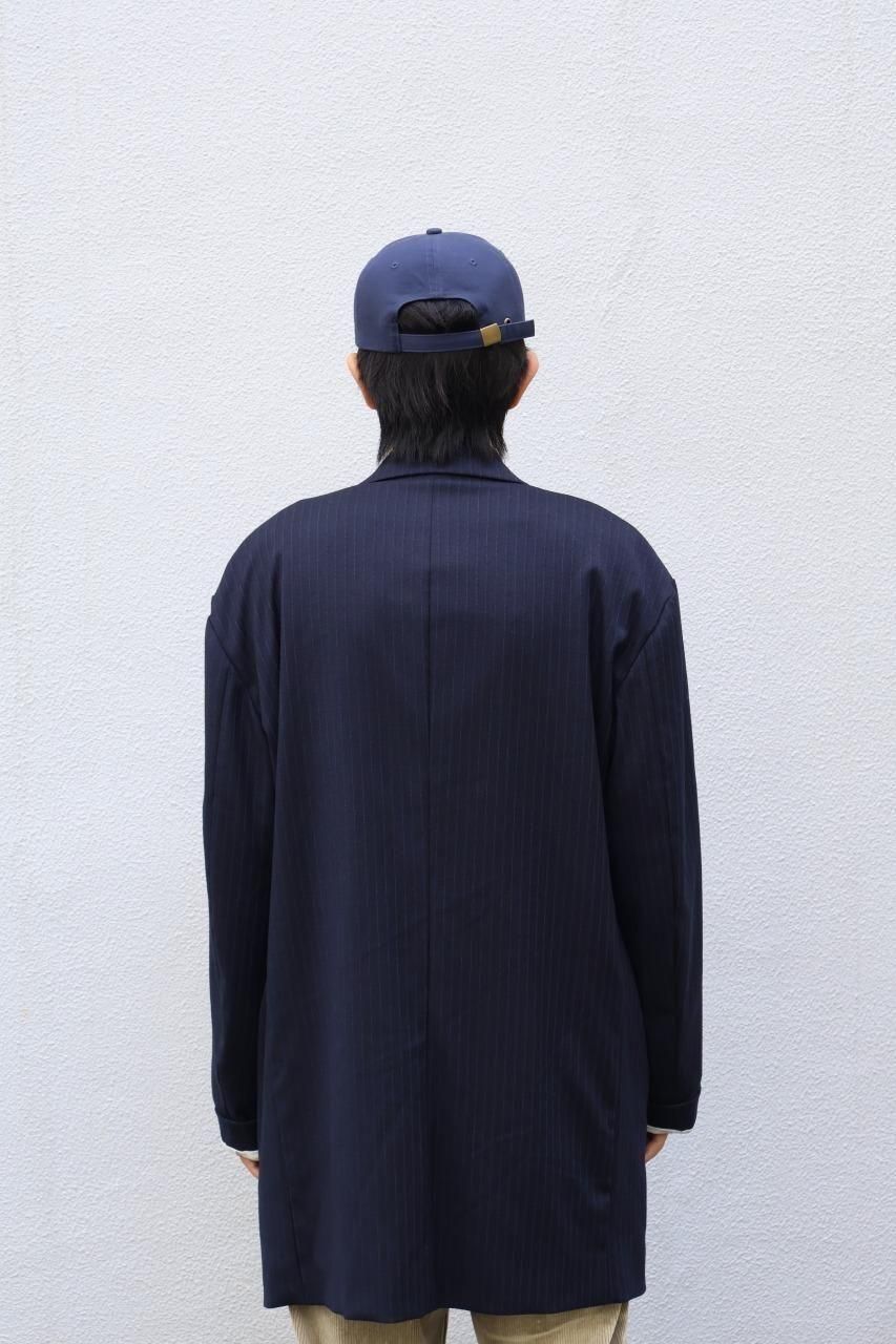 クローゼットに眠る、父や祖父のジャケットが着想源のジャケットはオーバサイズのシルエットをベースに比翼仕様などコートのディテールを踏襲しながら、肩や袖、シェイプなど再構築し、ソフトに仕上げたジェケットです。