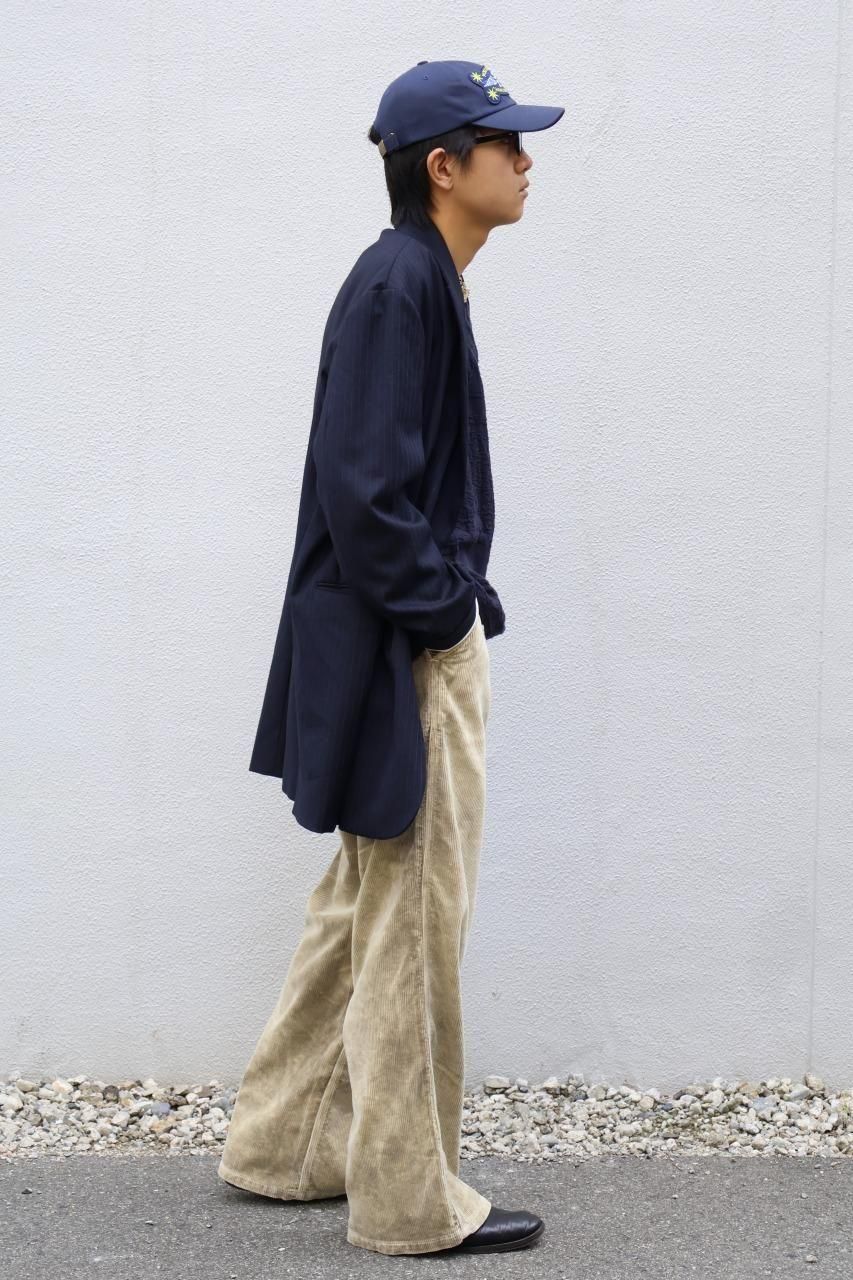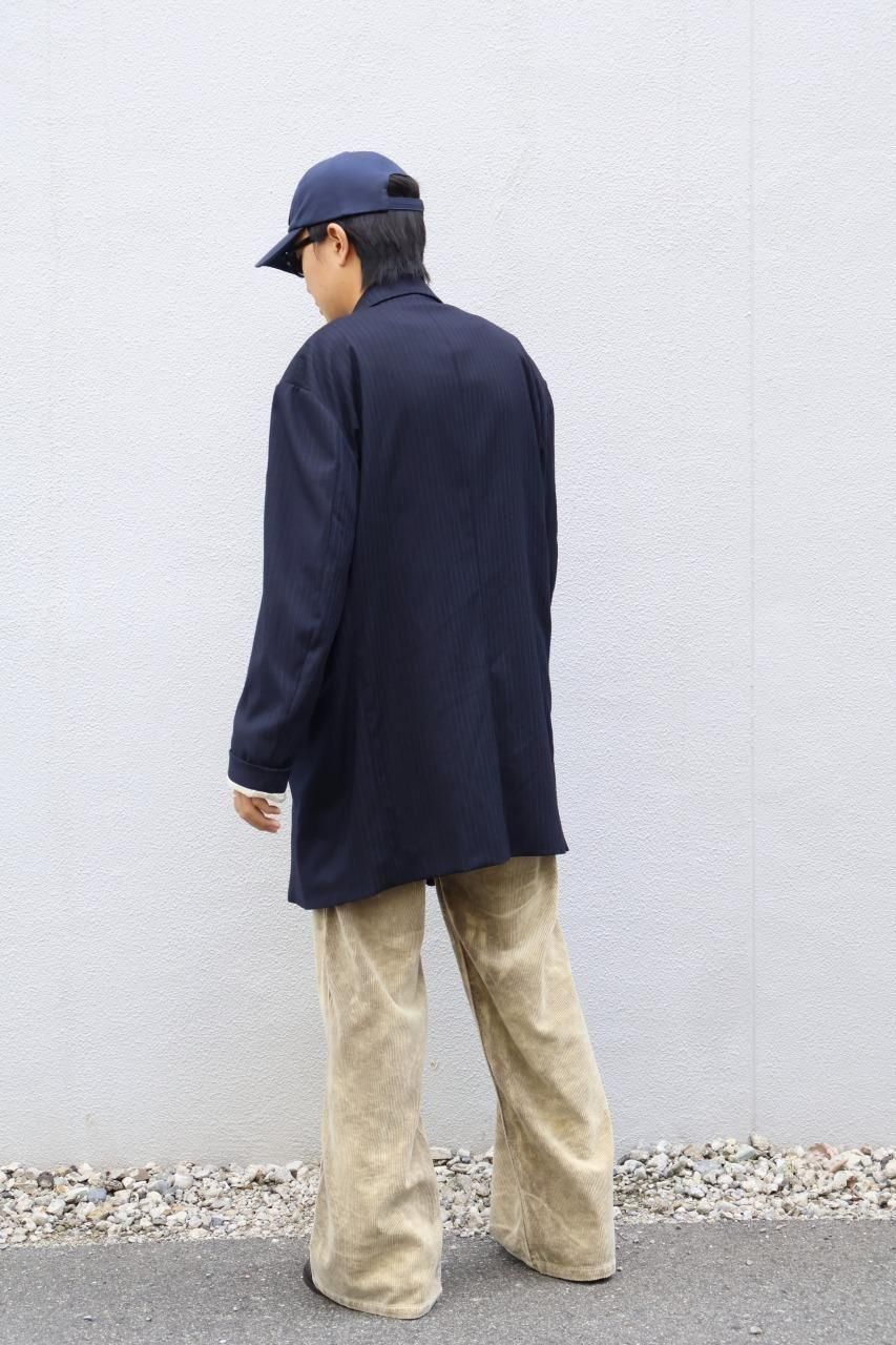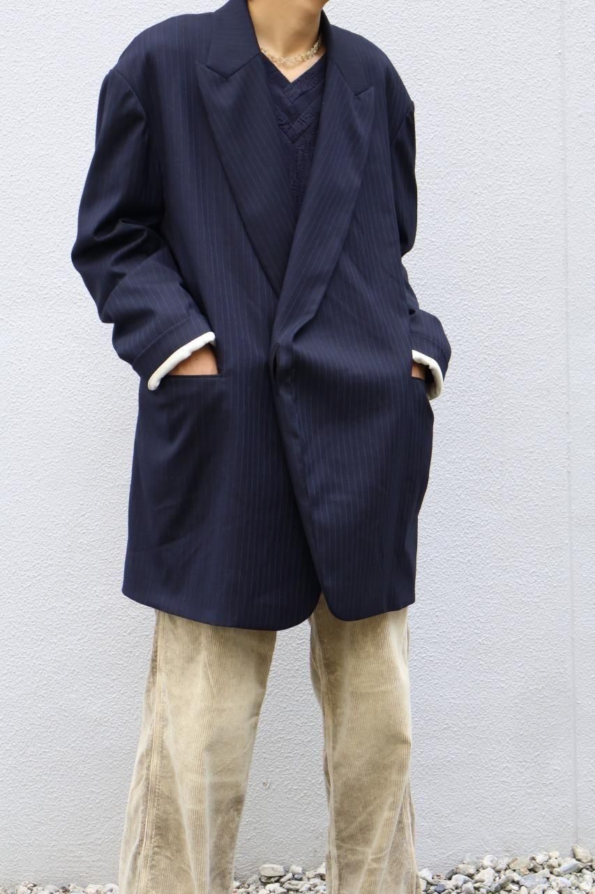 クローゼットに眠る、父や祖父のジャケットが着想源のジャケットはオーバサイズのシルエットをベースに比翼仕様などコートのディテールを踏襲しながら、肩や袖、シェイプなど再構築し、ソフトに仕上げたジェケットです。