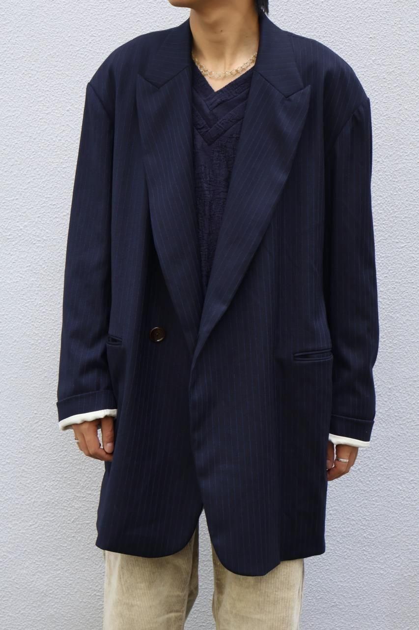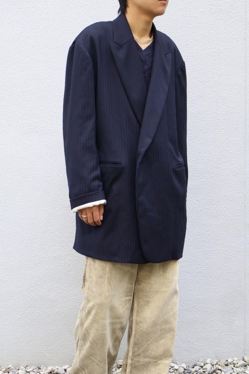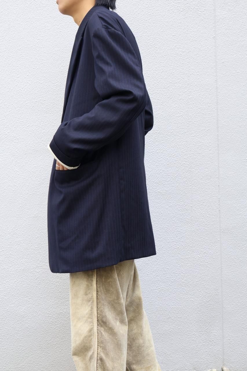 90'sのデッドストック生地のウールストライプは上品でありながら、製品洗いで洗いジワを残し、ナチュラルで抜け感のあるジャケットに仕上げています。