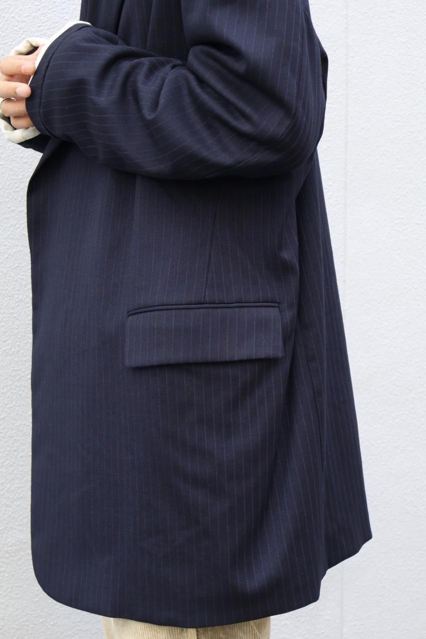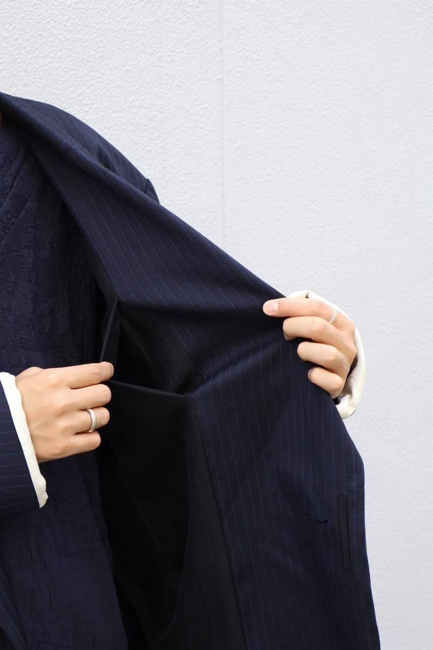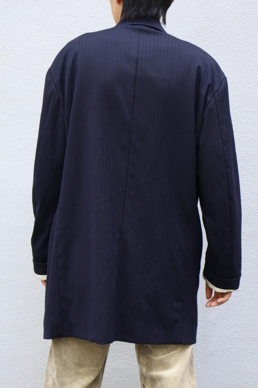 90'sのデッドストック生地のウールストライプは上品でありながら、製品洗いで洗いジワを残し、ナチュラルで抜け感のあるジャケットに仕上げています。