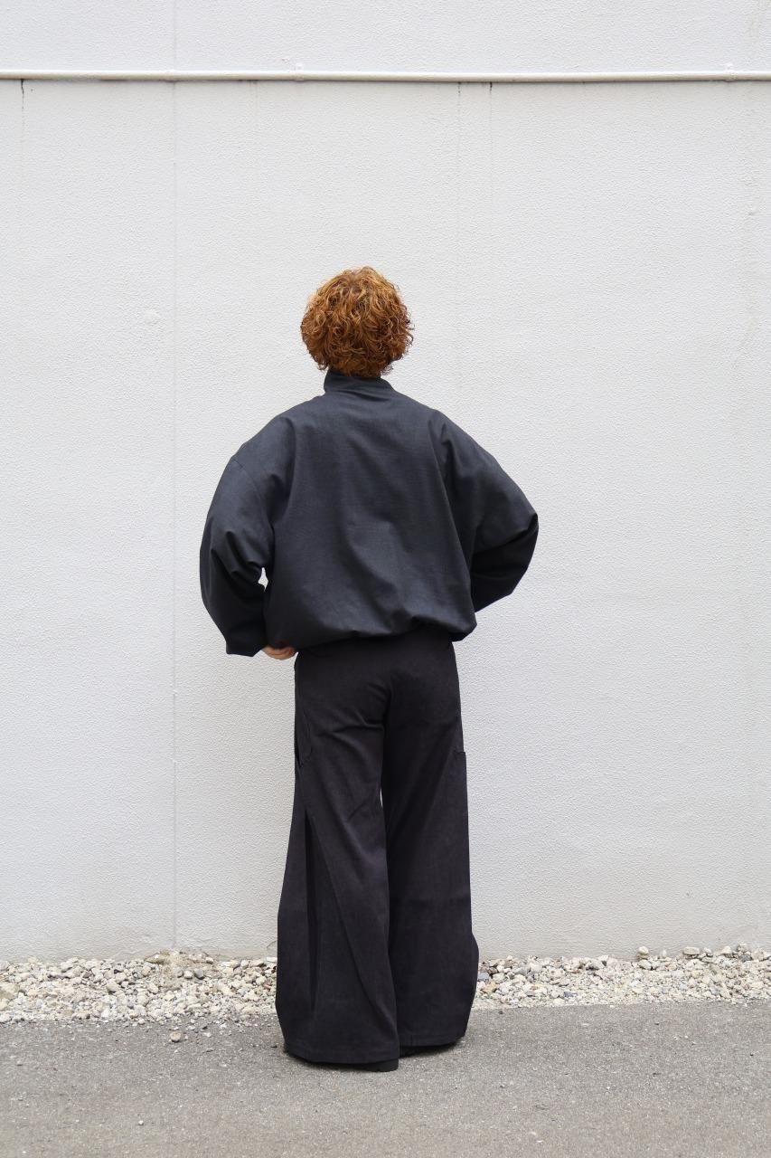 通常では、表側に配置される袖や裾のリブをギャザーで絞り、裏側に配置することで、今までにない、未体験のシルエットを実現した、ブランドらしい1着。