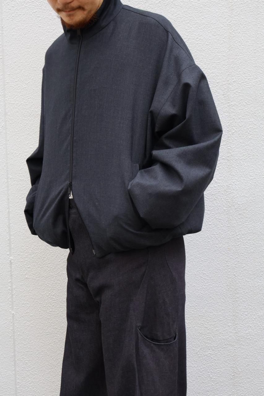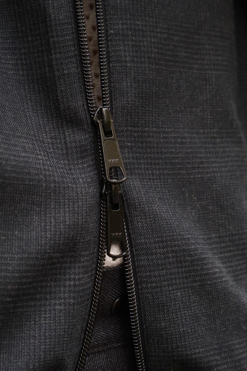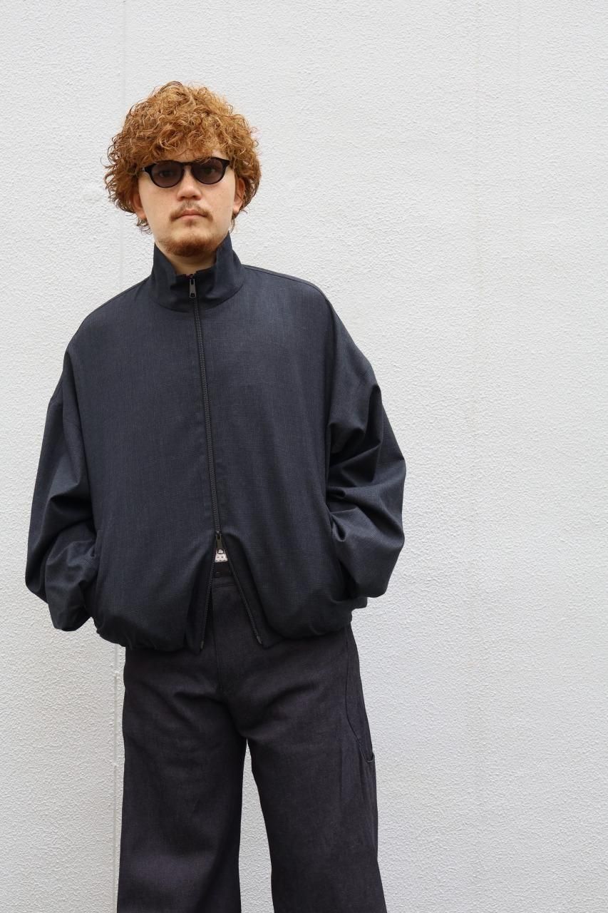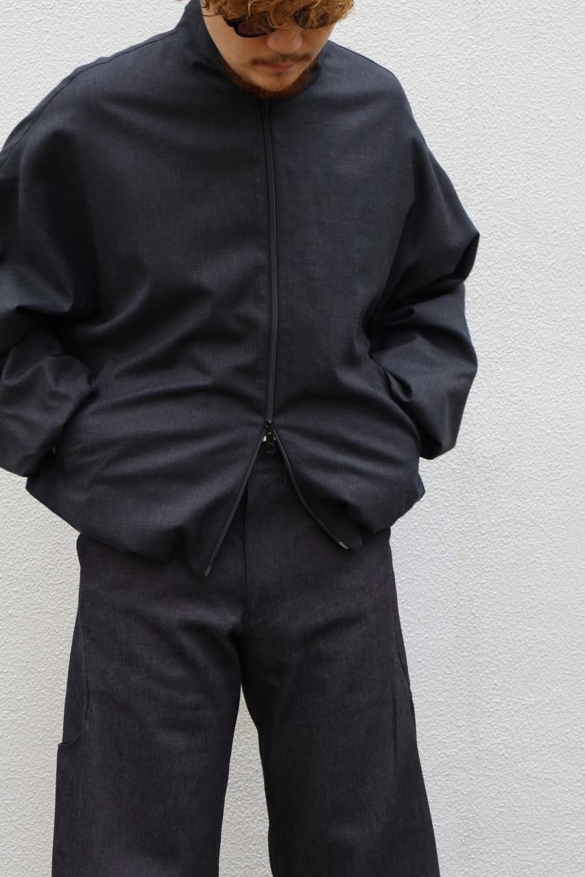 生地には光沢のあるグレンチェックのウール地を使用していたりと新鮮なシルエットとの対比も魅力の一つ。